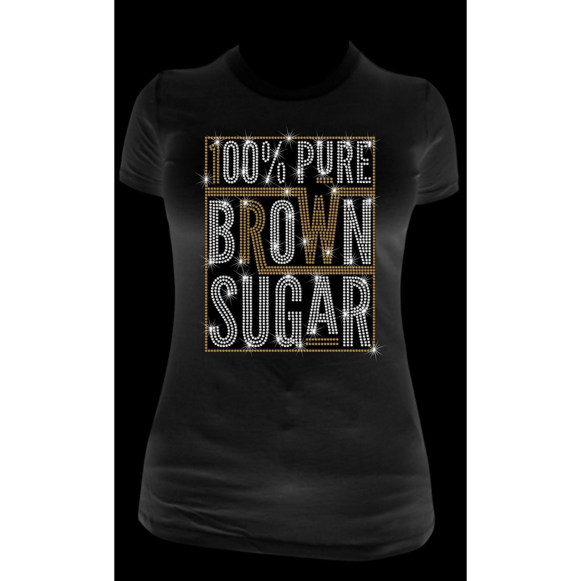 This blinged-out Pure Brown Sugar Rhinestone Shirt will have all eyes on you! Rock it with a pair of jeans or dress it up for a night on the town, for a fab-look that really stands out. Get ready to turn heads and sparkle in this totally glam shirt.